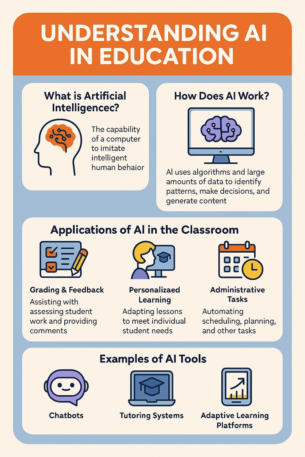 This module introduces educators to the foundations of Artificial Intelligence, clarifies key terms, and contextualizes its role in modern classrooms. Educators will explore real-world examples and reflect on their current AI usage through a guided audit activity.